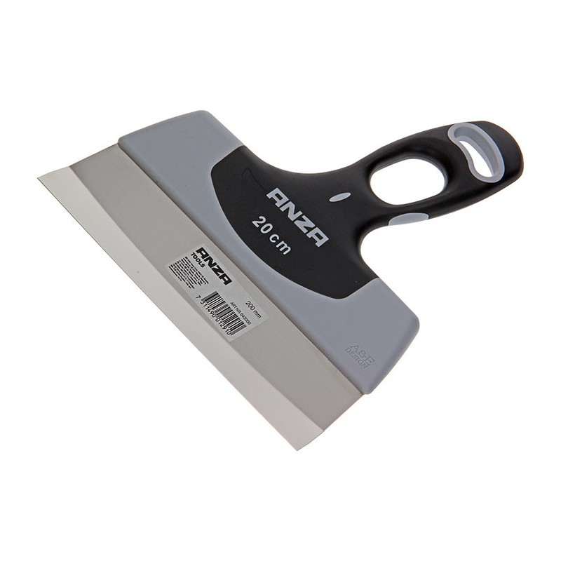 Anza plamuurmes / nadenvuller voor het perfect gladzetten van naden van gipsplaten, voorzien van ergonomisch handvat en speciaal gevormd RVS blad voor een glad eindresultaat.