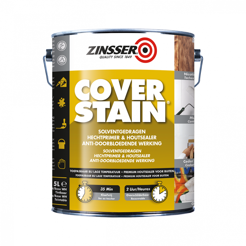 Buitengewoon geschikt voor (oneffen) houten panelen, sierlijsten en hardhout. Diep indringend vermogen en blijvend elastisch, isoleert bloedende inhoudsstoffen in hout, water- en roetvlekken.